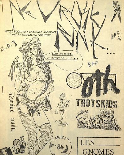 Zine punk photocopié A4 en 1986 dans la région parisienne: Orsay (91), pour au moins 2 numéros avec Ludwig Von 88, Les Gnomes, OTH, et de la chronique zines et skeuds dan sune mise en page bien sage.