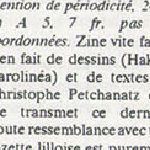 Zine graphisme et bédé édité par les éditions Incontrollées, basé dans la région Nantaise et actif de 1989 à 1991 avec la revue et diverses feuilles d'infos + un annuaire des Fanzines et de la Presse Parallèle en 1991. Avec Hakro, Petchanatz, Ambre...