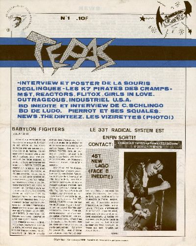 Zine punk de luxe, grand format A3 tiré en offset à 6000 ex édité in Paris en janvier 1988 avec le soutien publicitaire de Oui FM et de la BD dont Schlingo, interview de La Souris Déglinguée qui a droit en plus au poster et un article sur les K7 pirates des Cramps, pointu. Des news à la pelle mais une expérience sans suite semble-t-il.