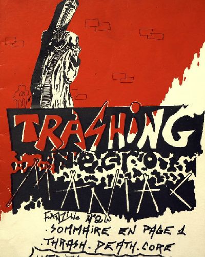 Zine Métal publié dans l'Eure de 1987 à 1990 pour au moins 5 numéros photocopiés A4 avec la cover bicolore, dense et richement illustré. Graphisme et collages.